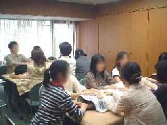 はじめに資料をお渡しし、レイキについて簡単に説明させて頂いてから『レイキサークル』を行いました。これは皆で輪になって両手を互いに合わせ、レイキを流していく方法です。これでしばらくレイキを流し、ウォーミングアップしてから、1人1分ずつレイキサークルの中に入っていきました。