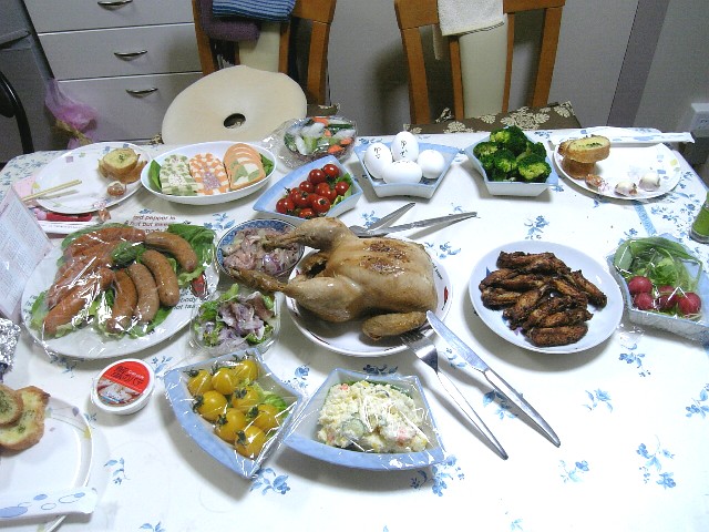 鳥の丸焼きとスペアリブは、私が買っていった。