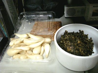 晩御飯その2塩らっきょう。シソの実を煮たの。