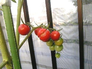 プチトマトプチトマトが、ようやく赤くなったので、とって、食べてみた。