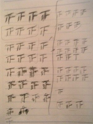 正の字が、太くなったり、模様みたいになったりしているところは、違うリフだということを表しているそうだ。