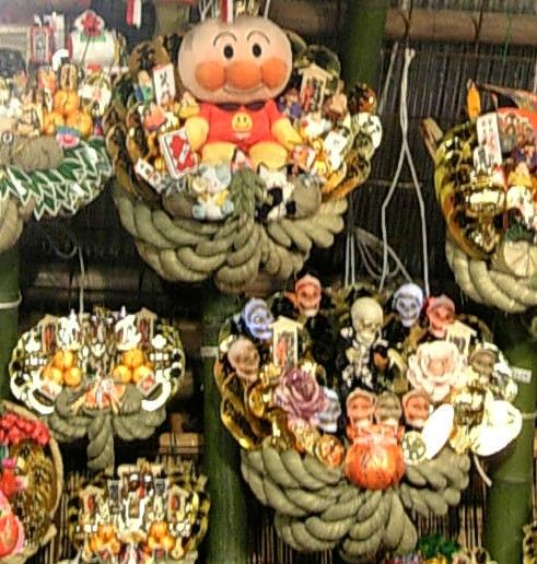 いろんな熊手昨年、趣味で作ったというアスカとレイの熊手を売っていたところは、今年も個性的な熊手が並んでいて、目を引いた。