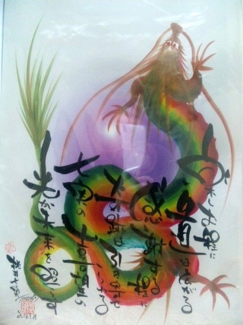 20120129-01龍の絵と、メッセージが描かれた色紙。