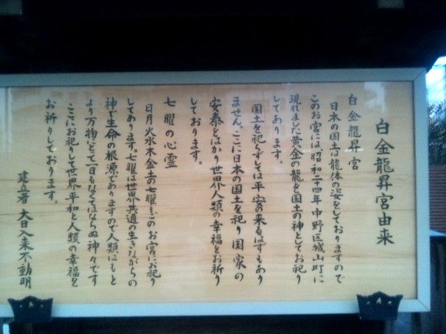 20120210中野坂上駅から帰る時に、いつも歩いている道とは、反対側の道を初めて通ってみたら、龍を祀っているお宮があった。