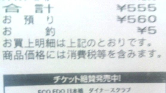 20130809買い物したら合計金額が、ゾロ目だった。