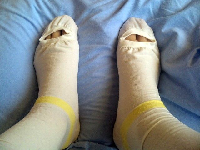 昨日、弾性ストッキングから解放されたと書いたが、それは看護師さんの間違えであり、実際はまだ穿いてなきゃいけないということが分かった。