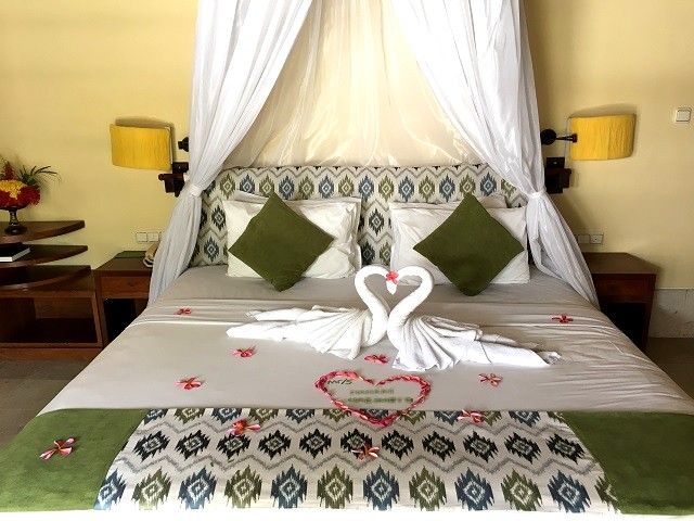 ベッドも素適に飾りつけされている。