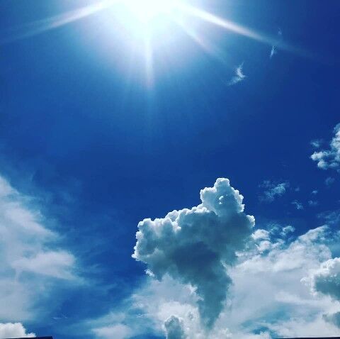 雲の立体感が綺麗だなぁと思って、写真を撮りましたが、太陽の光も、空の青さも綺麗ですね。