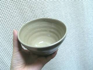 カフェオレ・ボールふちの円がね、うまく作れないんだよね。ろくろがまわっているうちに、手がとられて、ありゃ〜っと変形していってしまう。でも、この、ちょっとイビツな円も、手作りの味ですかね。