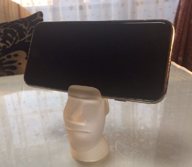 商店街に花を買いに行って、モアイのスマホスタンドを貰いました。